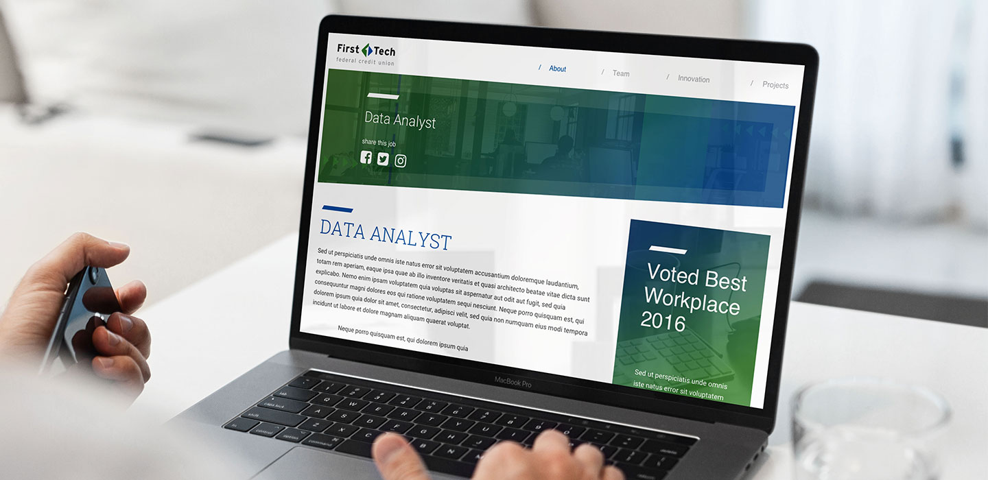 How do you attract the best design talent in your industry? The website we designed for First Tech Credit Union addressed that problem with first hand accounts given by employers, a look at recent initiatives, real-time social media posts, and more.