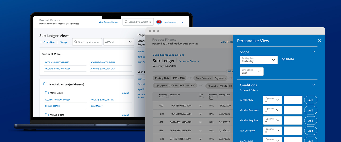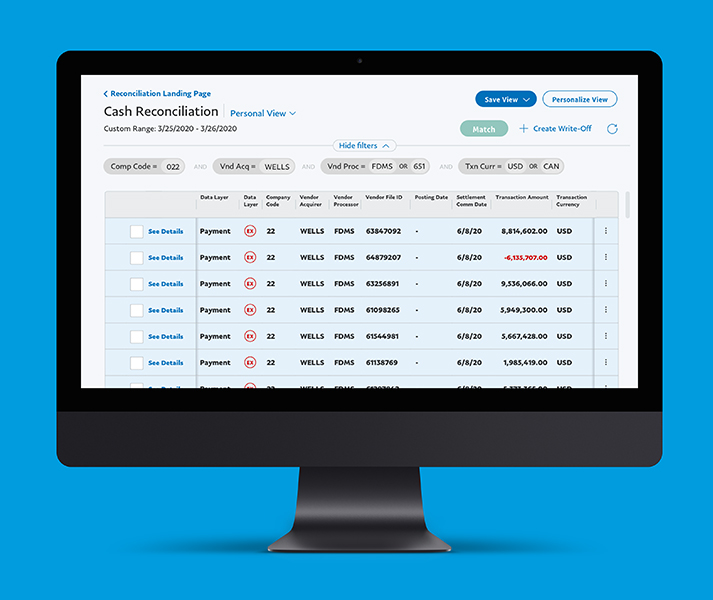 PayPal hired us to design the user experience and UI for custom treasury software. We collaborated with Ernst & Young’s accounting team and PayPal product managers to create a comprehensive site that included Cash Flow, True-Ups, Subledger, Reconciliation, and more.